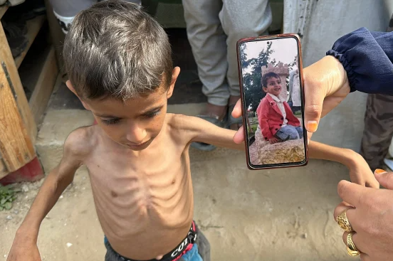 미국의 지상파 방송사 NBC의 2025년 4월 보도는 가자지구에 거주하는 6세 아동 오사마 알-라캅(Osama Al-Raqab, 이하 오사마)의 사례를 다루었다. 낭포성 섬유증(cystic fibrosis)을 앓아 건강한 체중을 유지하는 것이 상대적으로 어려운 오사마는 취재 당시 뼈가 드러나는 앙상한 체형을 보여 주었으나, 그의 가족(aunt)은 오사마가 전쟁 이전부터 질환을 가지고 있었으며, 분쟁 발발 몇 달 전만 해도 “행복하고 생기 넘치는(happy and full of life)” 상태였다고 증언하였다. 이를 증명하기 위해 오사마의 가족은 취재 사진을 촬영하는 오사마의 곁에 분쟁 이전의 사진을 나란히 두었다(Da Silva, 2025).